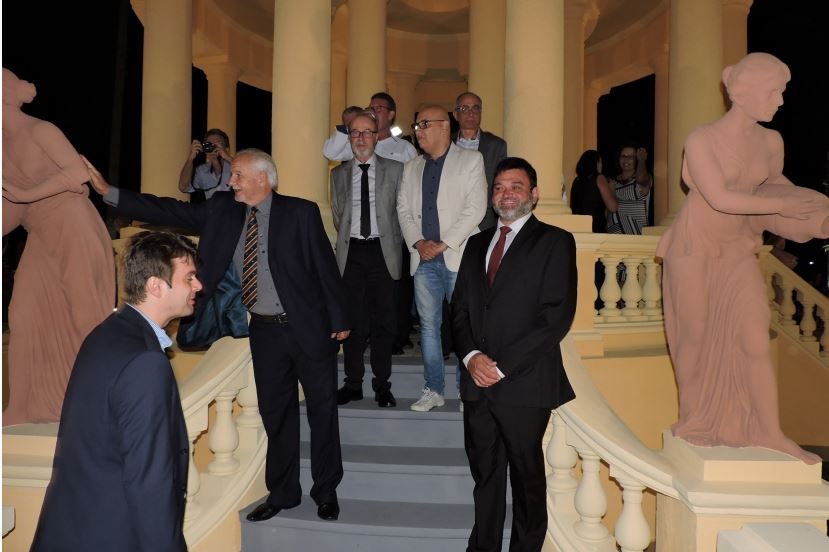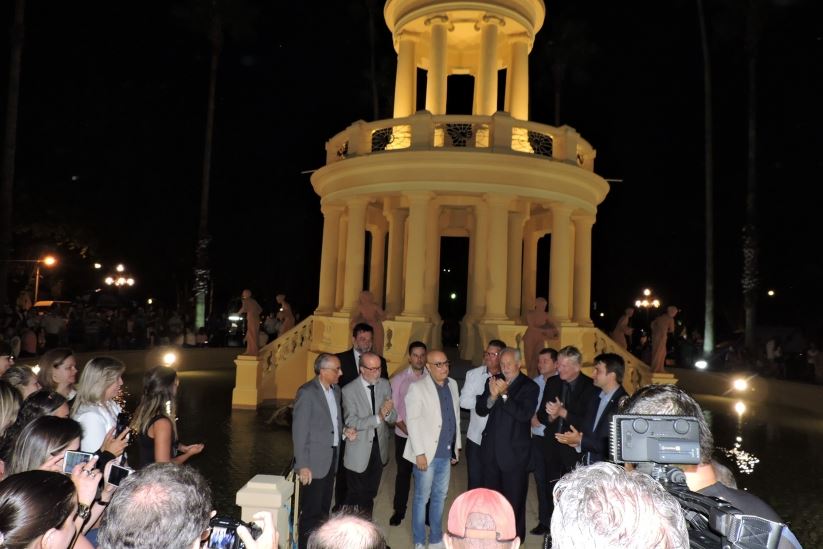 Toninho Sarasá junto às ninfas: entrega oficial do Château D'Eau à cidade aconteceu neste sábado