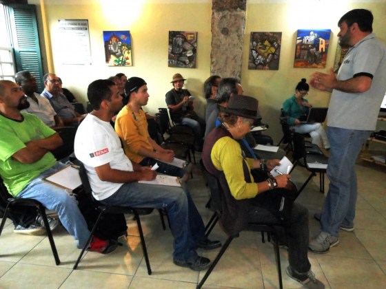 De forma simples e prática, os trabalhos começaram com a apresentação do monitor Adriano Augusto Rocha, do Estúdio Sarasá que respondeu a diversos questionamentos dos participantes relativos ao dia-a-dia de quem usa a técnica da pintura a cal.