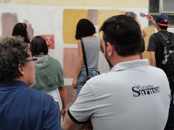 A seguir, os participantes seguiram para a Igreja de São Benedito, que já tinha a sua parede do fundo preparada para que individualmente fosse testada uma paleta de cores, bem como, as técnicas de proporção e mistura da cal com os corantes, exemplos de sua empregabilidade, processos de tratamento e “cura” .
